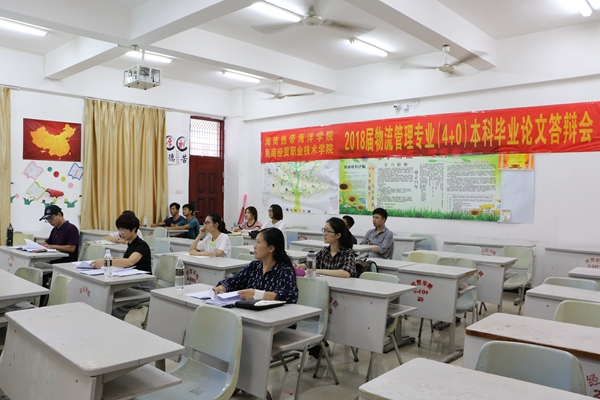 本校5月23日讯(宣传统战部报道)2018年5月22日下午,海南热带海洋学院、海南经贸职业技术学院联合培养的首届物流管理专业(4+0)本科生毕业论文答辩会在一号教学楼举行。2018届物流管理本科专业2个班级共88名学生参加答辩。