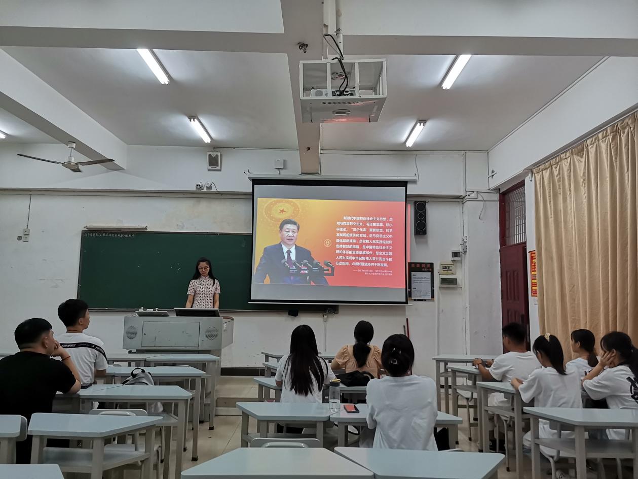 党支部书记苏伊蕾讲解主题为《习近平新时代中国特色社会主义思想体系及实践》的党课,讲解了新时代中国特色社会主义思想的内涵,坚定了学生党员对于中国特色社会主义的信念和信心,激励着他们成为社会主义的合格建设者和可靠接班人。