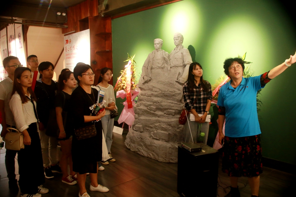 活动邀请了南侨机工代表黄迎风的后人黄良妹进行讲解,在黄会长的详细讲解下,大家进一步了解了南侨机工回国支援抗日战争的历史背景和经过。特别是黄会长在讲到父亲的事迹时落下的眼泪,更是让大家感同身受,在场学生党员和入党积极分子眼睛都湿润了,大家纷纷表示要向老一辈革命先人学习,学习他们不怕牺牲,甘于奉献的精神,并留言明志:不忘南工精神,牢记历史使命,不忘初心前行,为中国梦奋斗。馆中还展示了南侨机工热血奋战“救家救国”的抗战故事,同时陈列了革命先辈们的图片与雕塑。参观结束后,全体党员在馆前南桥机工雕塑前进行了合影留念。