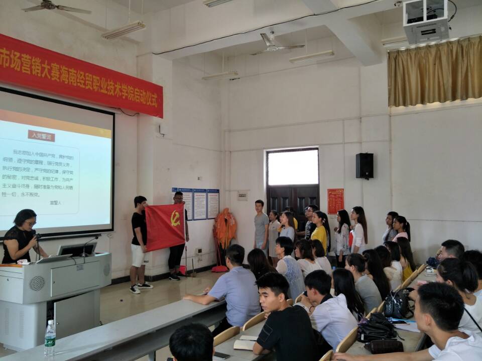 6月14日中午11点40分,我院在1-209教室召开了工商管理学院入党宣誓仪式暨专题党课,由印华老师主持。蒙永坚书记、赵爽老师、赵志凌老师、徐翊缤老师、刘冬芸老师、陈俊池老师和叶剑峰同学等15名预备党员、在校党员参加会议。