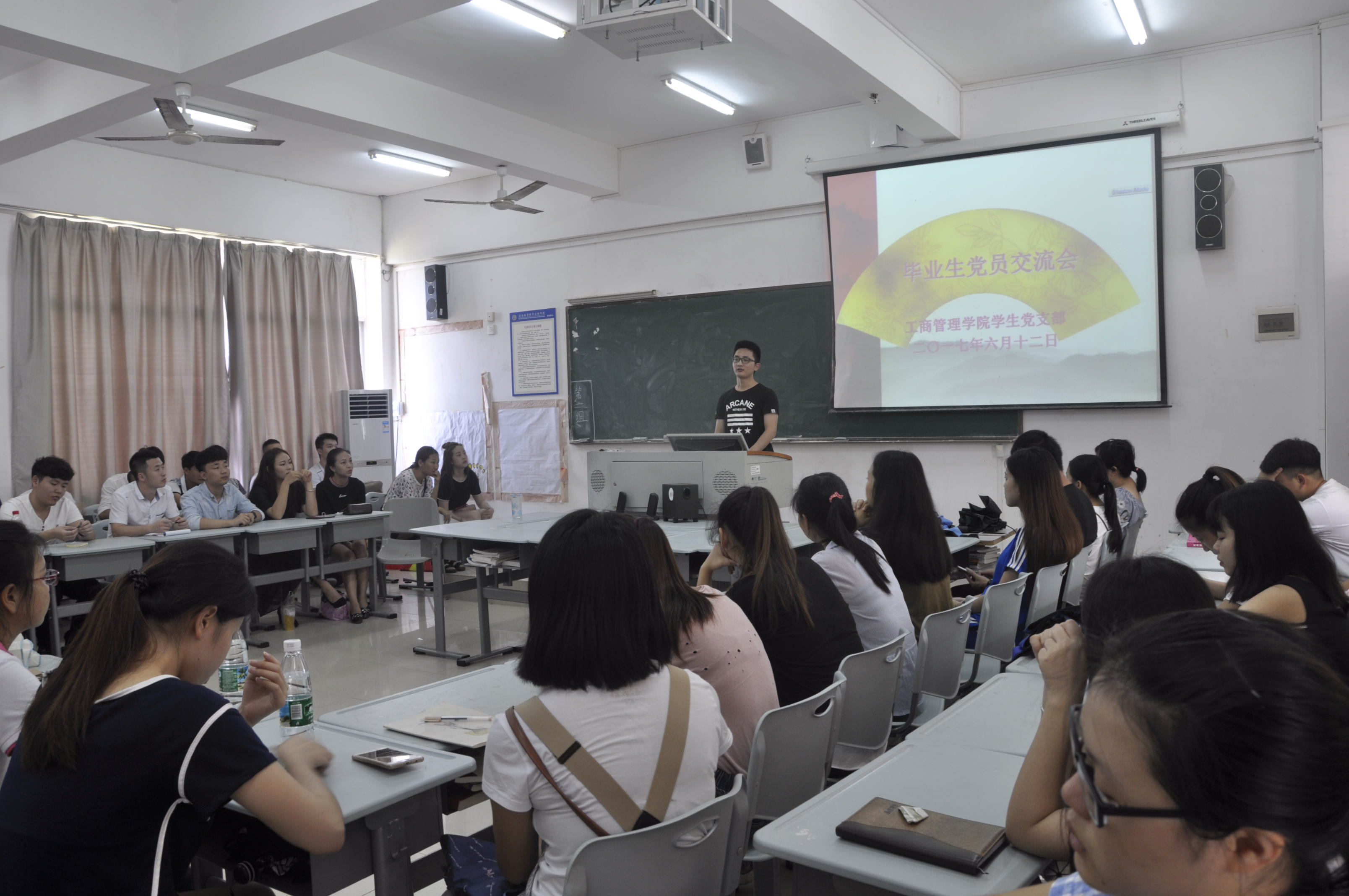 又是一年离别季,工商管理学院2014届毕业生即将离开母校,开始新的征程。为更好的做好毕业生离校工作,今日下午3时许,我院党支部在第一教学楼305教室召开了毕业党员交流座谈会,优秀应届毕业学生党员向15/16级学弟学妹们讲述实习经验,彼此切磋学习方法。本次座谈会由我院学生党支部书记印华老师组织召开。