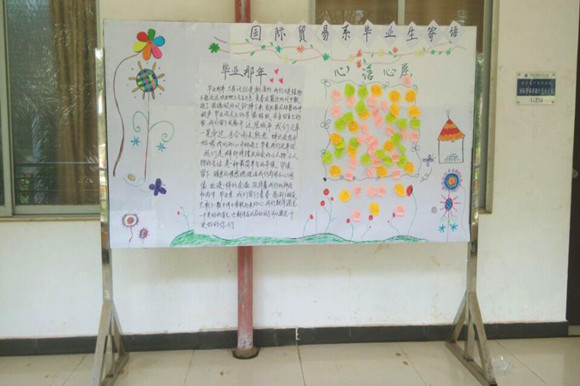 据了解,为使在外实习半年的学子在毕业季“回家”时充分感受到我系这个大家庭的温暖,感受到来自全系师生的关爱,我系不仅分别在男生宿舍和女生宿舍¥下悬挂欢迎横幅,还组织团总支宣传部还为毕业生们精心制作了“毕业生寄语”宣传栏,写下星星点点的心语心愿,表达学弟学妹们对毕业生最深切的祝福。
