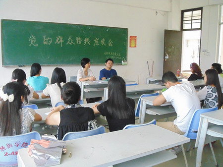 本月9月18日讯(国贸系通讯员 吴丹妮摄影报道)根据我院关于开展的党的群众路线教育实践活动,抓好贯彻落实工作的部署,我系于昨日下午16时许在第一教学楼,召开学生预备党员关于“党的群众路线教育实践活动”学习座谈会。我系党总支书记蒙永坚出席了座谈会,22名学生预备党员参与此次座谈会。