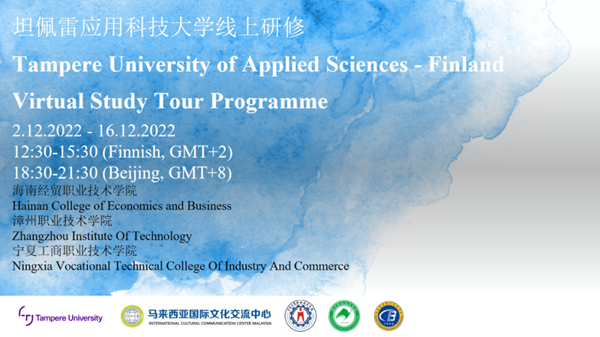 2022年12月2日,太阳网集团tcy8722与芬兰坦佩雷应用科技大学联合组织的学生线上研修班正式开班,30名学生将开启“芬兰的高等教育"课程之旅。