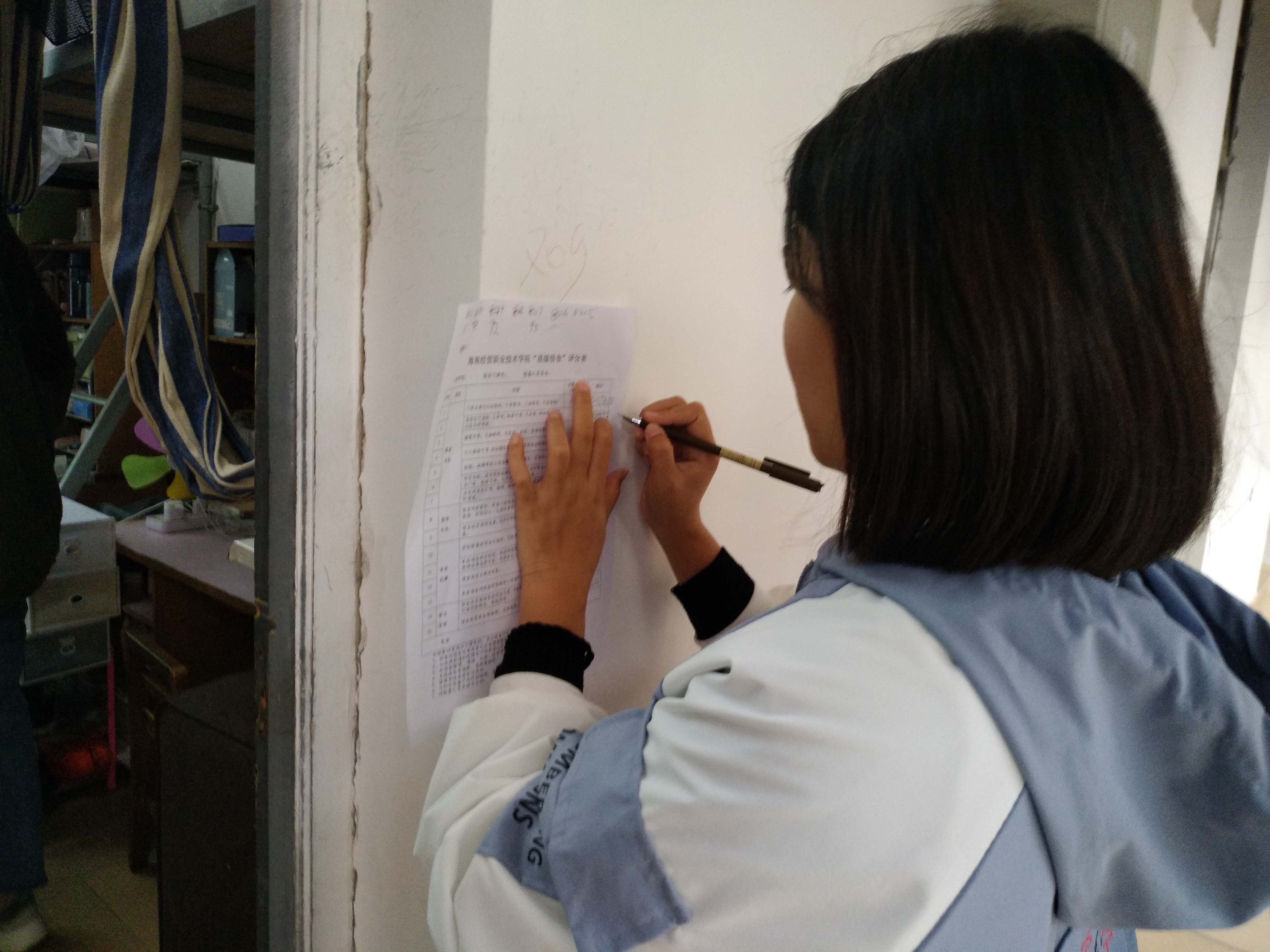 本次评选活动由辅导员带领进行查寝。下寝过程中检查组人员始终保持着公正、公平、严谨的态度,细心检查所有可能的安全隐患,认真记录各个寝室的查寝情况,不作假,不马虎,根据多方面的综合考核进行打分,并且认真汇总上报给学院。在本次星级宿舍评选过程中每位同学都认真打理自己的“小家”,营造了一种温馨和谐、健康向上”的宿舍氛围。