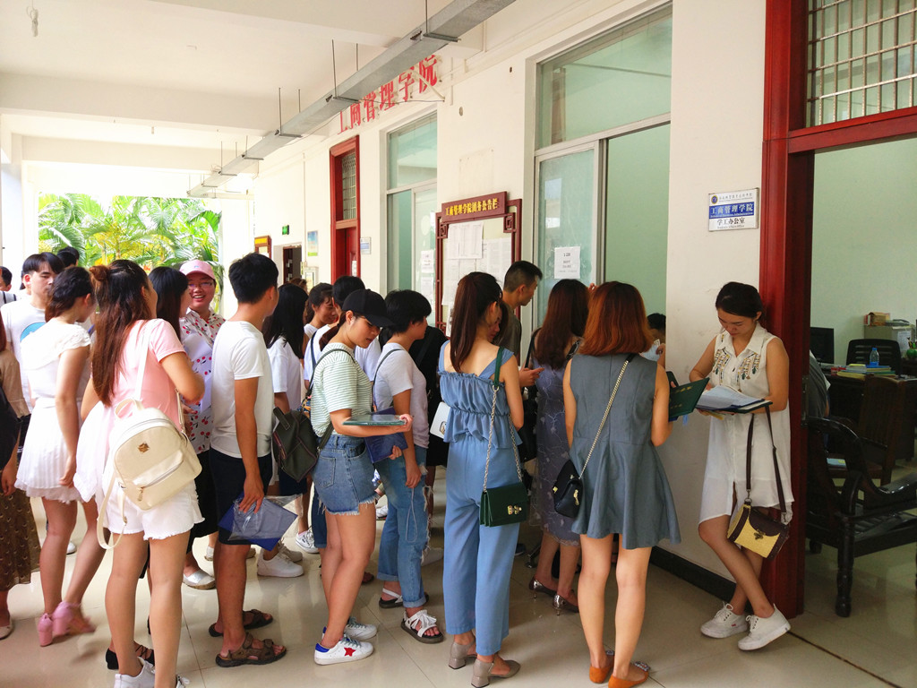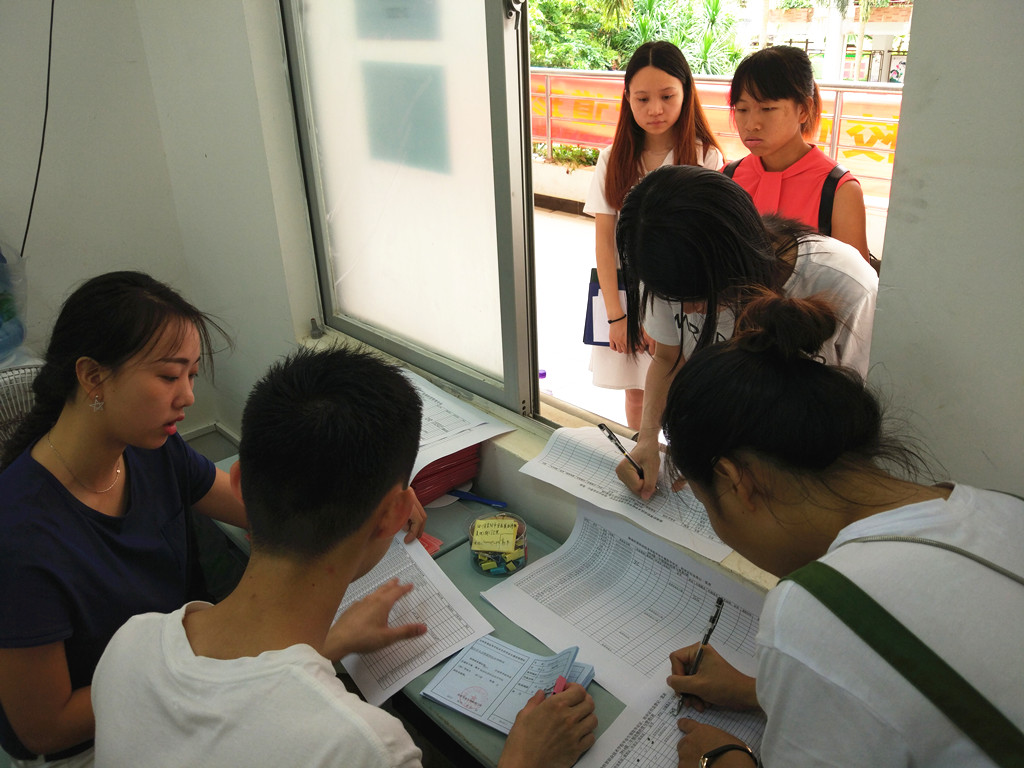毕业的同学们井然有序地在排队领取报到证