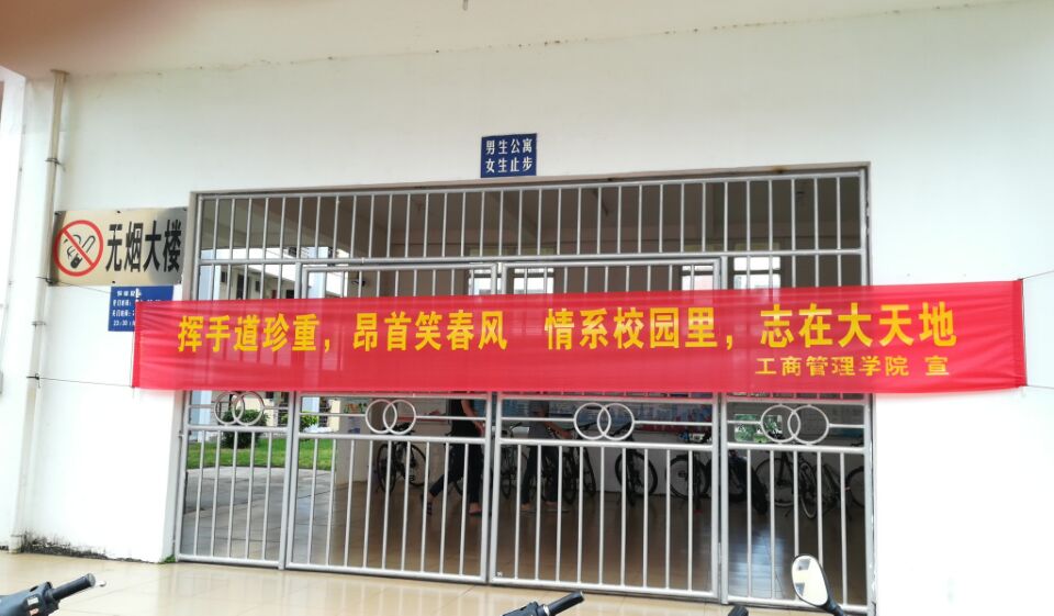 6月16日讯(工商管理学院 报道)六月未央,夏花灿烂,感怀、留恋、憧憬、责任的情愫弥漫整个校园。为了保证毕业生文明离校,营造有序、和谐的离校氛围,我院坚持服务至上服务育人,在做好各项服务保障工作的同时,把最真切的祝福送给每一毕业生,让他们把最美好的记忆都定格在校园里。