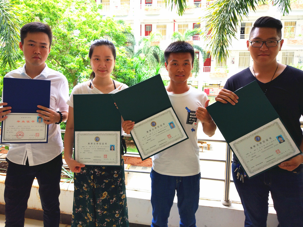 领取了毕业证和准学士学位证书的同学们,欣喜写在脸上