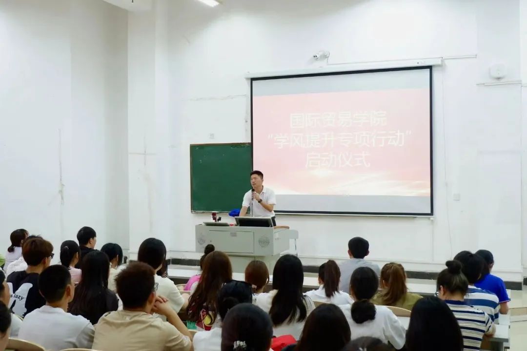 最后,学院党总支副书记梁其钰对学院学风提升专项行动提出要求。他希望全院师生要认真贯彻执行学风提升专项行动方案,不断查摆学院学风建设工作中存在的不足,从我做起,建设国贸学院学风新貌。接下来,我院将结合实际,精心组织,扎实开展教学、宿舍区域巡查、优秀学子分享会、学风建设座谈会等活动,用优良学风推动学院各项事业再上新台阶。