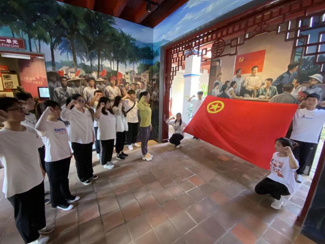 整合海南全岛红色资源,打卡红色地标,开展现场教学,传承红色基因。学院成立“青年脊梁”红色实践教育中心,学院团总支带领广大团员青年先后到海南解放公园、五指山革命根据地纪念园、白沙起义旧址、三亚西沙海战烈士陵园、万宁六连岭革命根据地等地实地开展红色“践学”,团员青年身临其境中体味峥嵘岁月,重温入团誓词,对标检视自我,寻找理论滋养,接受思想洗礼。组织师生到母瑞山革命根据地实地感受“琼崖23年红旗不倒”的伟大精神,到陵水苏维埃政府旧址开展主题团日活动,体验琼崖第一个红色政权保留下来的不易。广大团员青年穿越时空、触摸历史,在追寻党的光辉历程中受到感染教育,用实际行动认真践行党旗所指就是团旗所向。