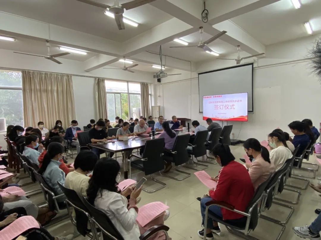 在师德师风承诺宣誓仪式环节,在学院辅导员赵爽老师带领下,全体教师起立,郑重做出承诺:“我是一名光荣的人民教师,肩负着立德树人的责任和使命......”全体教师现场签订师德师风承诺书。教师们纷纷表示,要把宣誓的承诺内化为自觉行动,坚守教育初心,坚持立德树人,积极参与“双高”建设和“升本”工作,助力学院高质量发展。