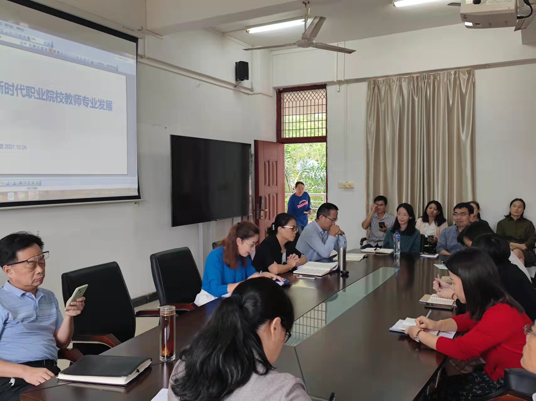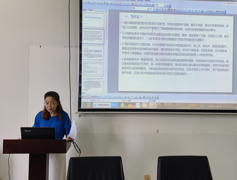 在会上,龙璇院长首先在会上与老师一起进行了“新时代职业院校教师专业发展”主题的学习,并强调各位老师应积极提高双师素质,并进行教材改革,教法改革。