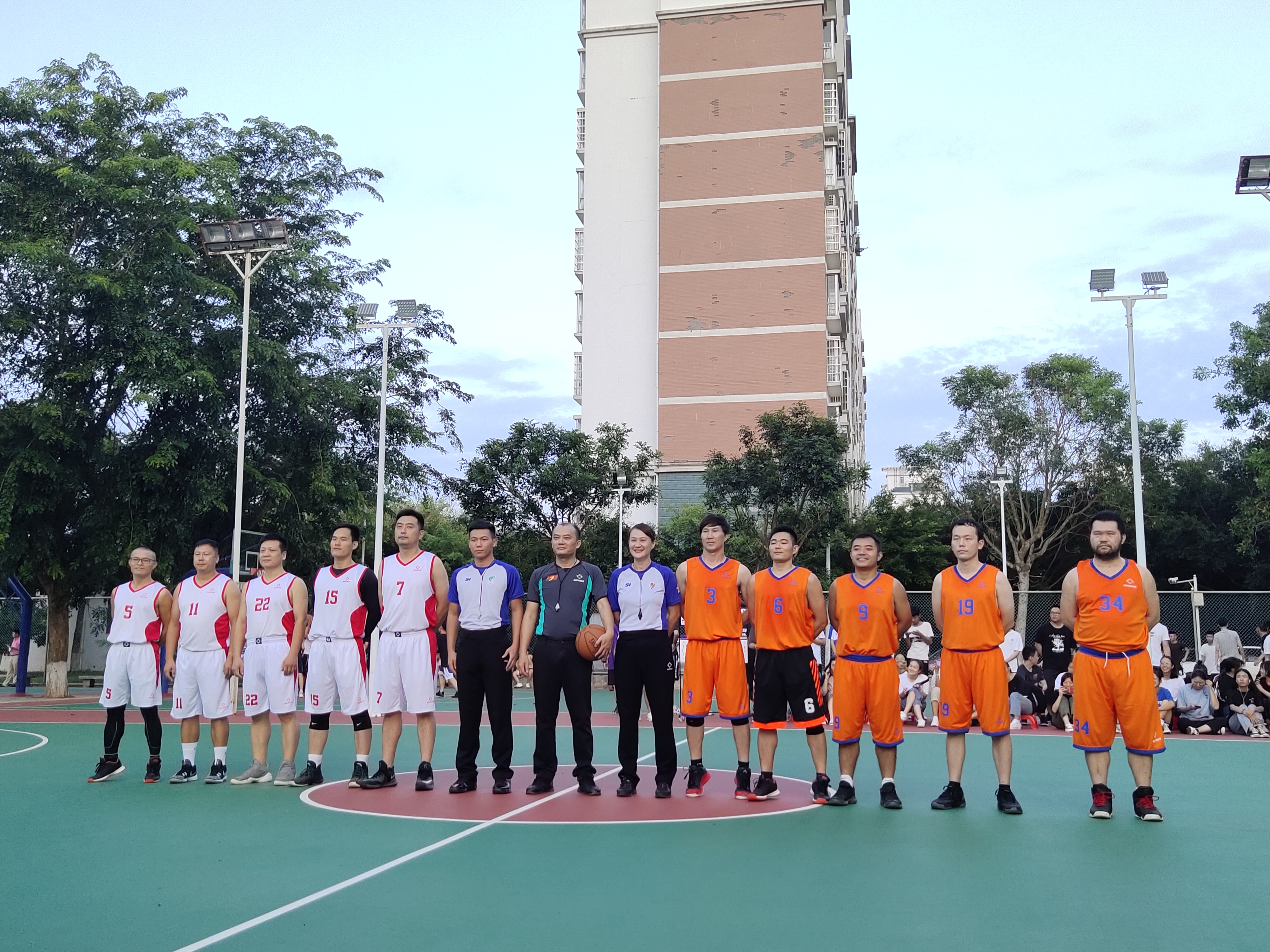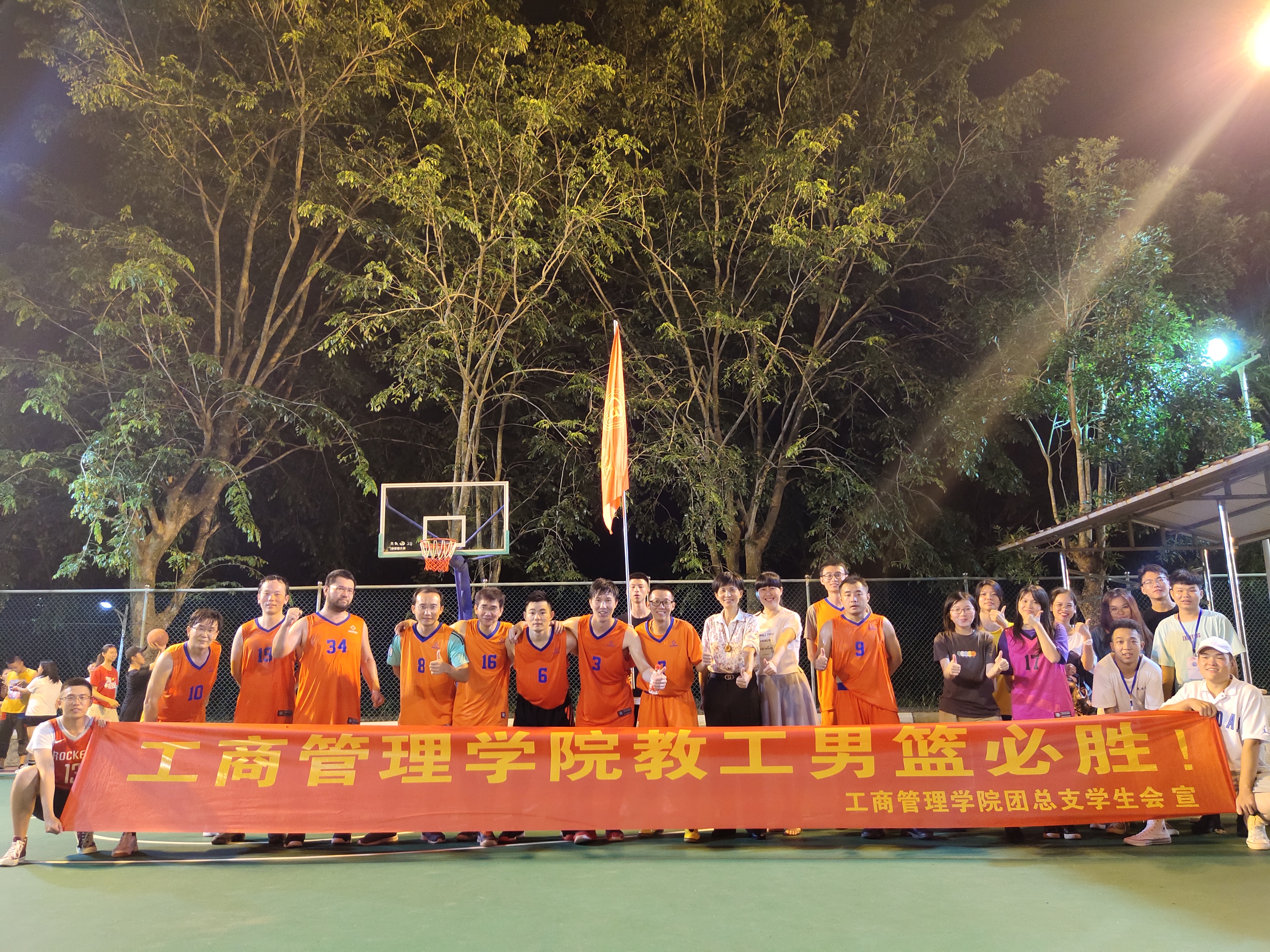 2019年10月8日讯(工商管理学院新媒体中心报道)2019年10月8日晚18:00时许,由我校举办的教职工篮球决赛于学校室外篮球场隆重举行,我院工管党总支书记蒙永坚、副书记麦锐以及老师学生代表到场观看比赛。