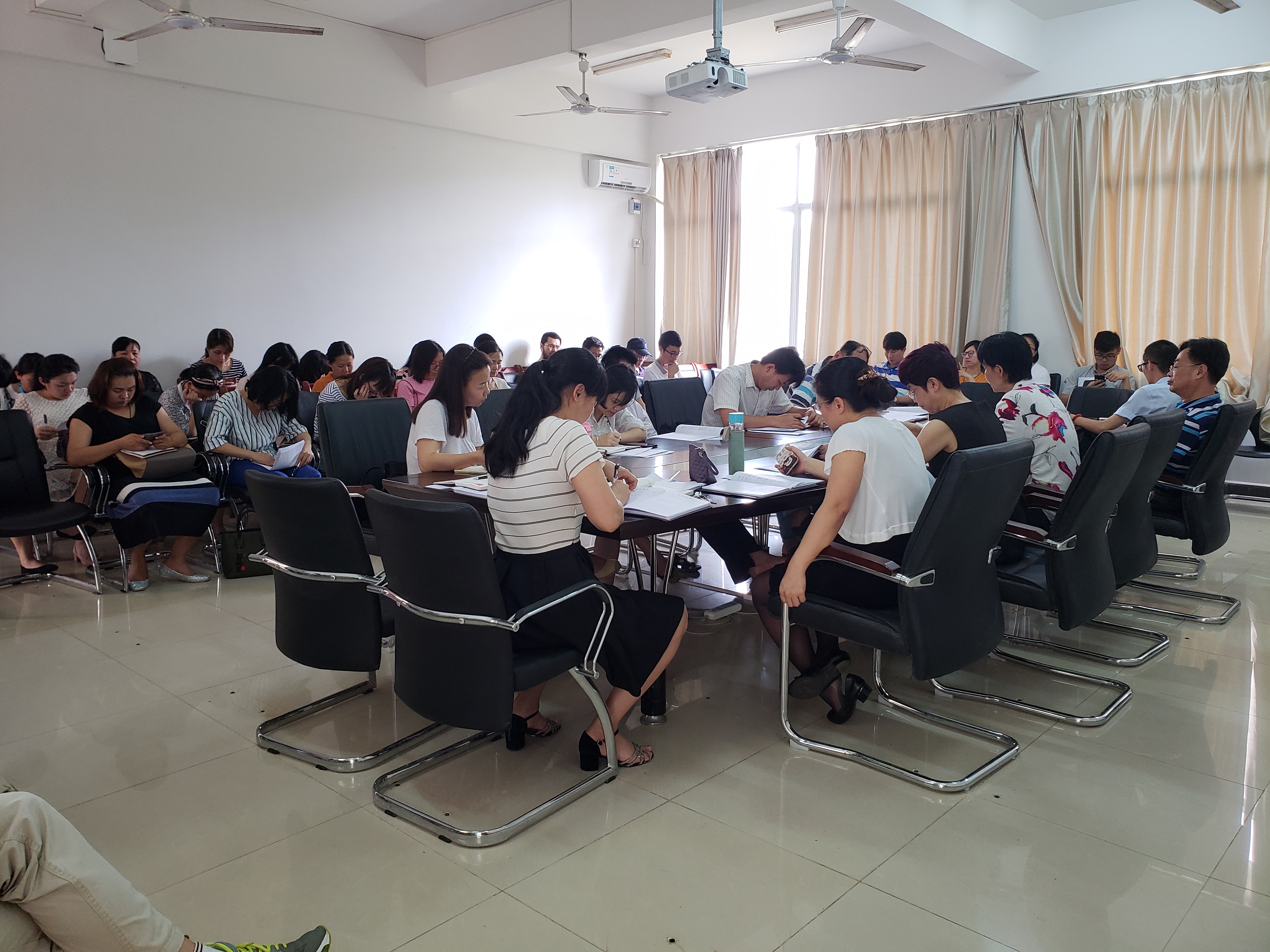 2018年4月30日讯(工商管理学院报道)2018年4月24日下午14:45分,在工商管理学院会议室(1-205)召开了全院教职工期中教学工作会议暨学习党相关文件精神。此次会议由龙璇院长主持,全体教职工参加,会议总体分为三大议程。