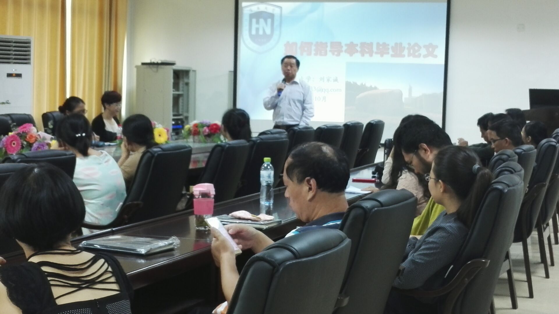 本院10月17日讯(工商管理学院报道)第一批4+0本科学生毕业时间越来越近,工商管理学院为了更好的完成第一批本科生毕业论文的撰写和指导工作,特邀请海南大学经济管理学院副院长刘家诚教授于2017年10月17日下午4点在我校图书馆二楼会议室,为我院教师进行了“如何指导本科毕业论文”的专题讲座。