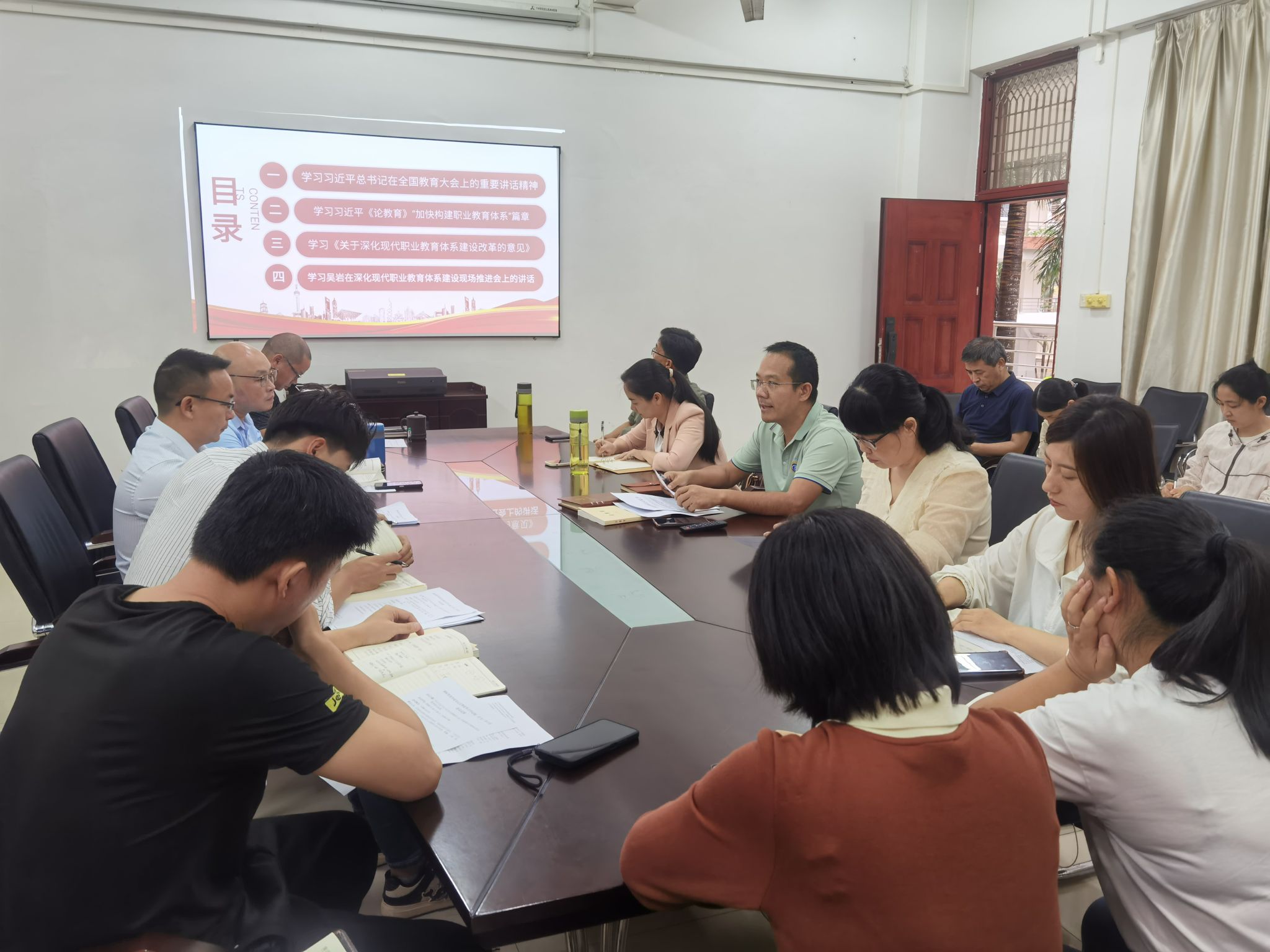 2024年10月29日,太阳网集团tcy8722党总支理论学习中心组召开扩大学习会,专题学习习近平总书记在全国教育大会上的重要讲话精神及职业教育相关政策。