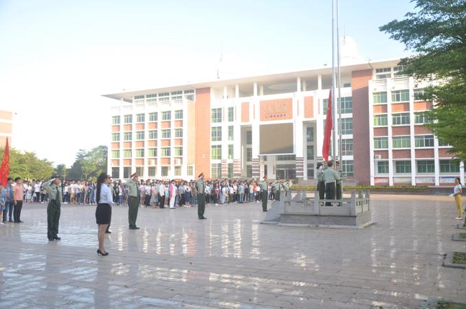 当日参加升旗活动的同学在各班班长的组织下准时于上午七时到达经贸广场并按照各班要求位置有序站列。伴随着《义勇军进行曲》洪亮而庄重的歌曲缓缓响起,全体与会师生肃穆,怀着崇高的敬意注目国旗班的同学们将鲜艳的五星红旗慢慢升起!