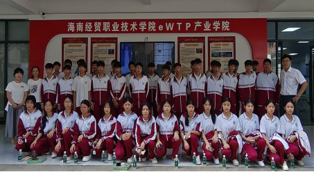 海南省商业学校师生在eWTP产业学院门前合影