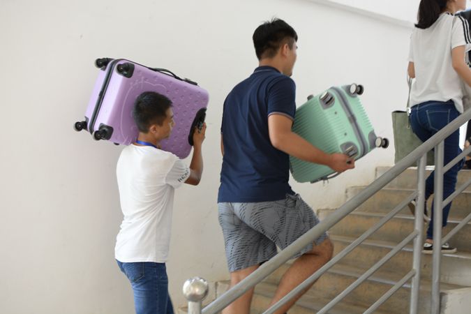 工作人员不畏日晒不怕辛苦把每一位新生顺利送到宿舍