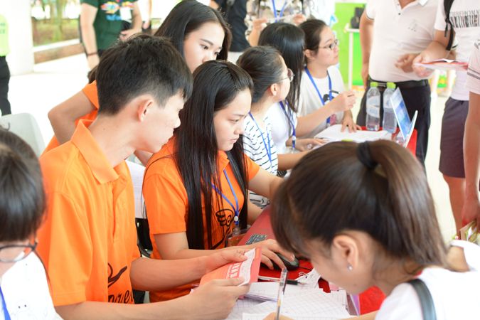 报到现场工作人员认真核对每一位新生信息