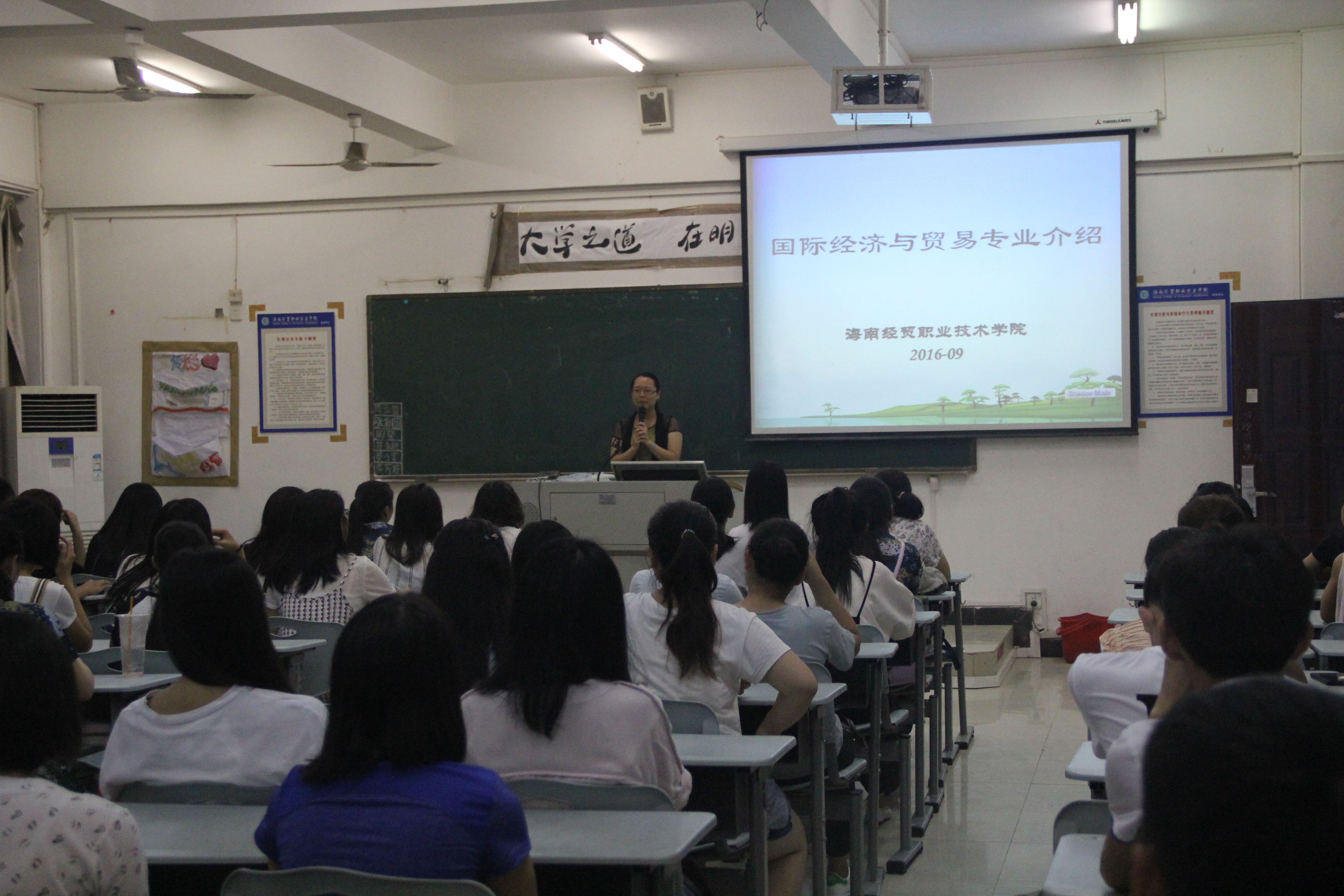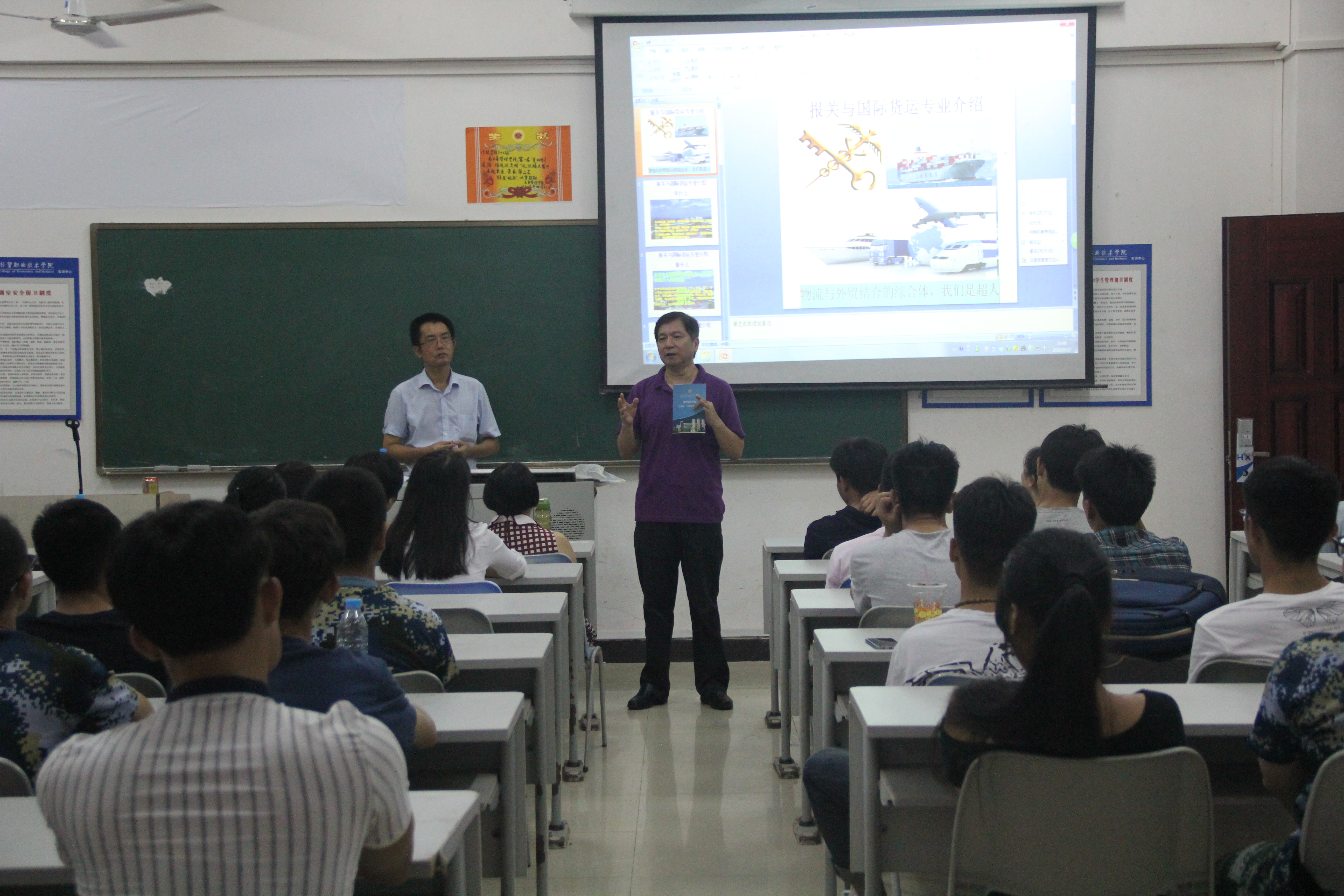 营销与策划专业还专门请回了在职场获得成功的优秀毕业生来与新生进行交流互动,让新同学更加了解专业及未来发展方向。商管专业负责人张坚老师从三个方面告诉新同学大学的生活应该如何度过,才不算虚度光阴。国际商务管理专业负责人覃娜老师用视频的方式为学生展示了国际商务专业未来的发展方向,让新同学信心倍增。物流管理专业负责人王明严老师,则向新同学展现了大物流时代,物流管理专业的学生应该掌握的技能,通过自己掌握的技能如何引领时代的变革,实现自我价值。连锁经营与管理专业老师陈声廉老师为新同学介绍了连锁专业人才培养方案,告诉新同学如何将实训课程与理论课程完美的结合,提高自己的实操能力,为自己提升就业竞争力做好准备。报关与国际货运专业负责人陈广老师不仅仅为新同学介绍了专业上的知识,还请我校继续教育学院院长谷强老师为学生做了专业的继续教育知识的介绍,使有志于进行继续教育的同学提前选择做好准备。国际经济与贸易专业负责人陈丽云老师为新同学进行了声情并茂的专业介绍,很多新同学站在教室后面听老师的讲解,听得很入神、很认真。