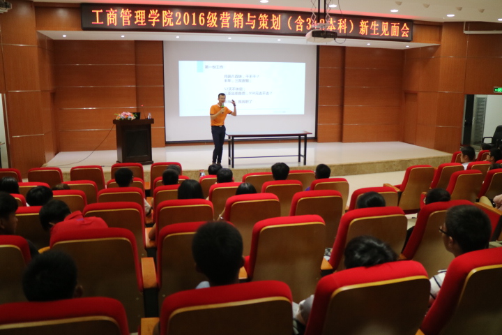 2016年9月13日晚7:30分,工商管理学院隆重举行2016级新生见面会暨专业介绍会。本次见面会工商管理学院分专业进行,各个专业负责人带领专业教师在分属教室与2016级新生之间进行了热烈、专业、详尽的交流和探讨。