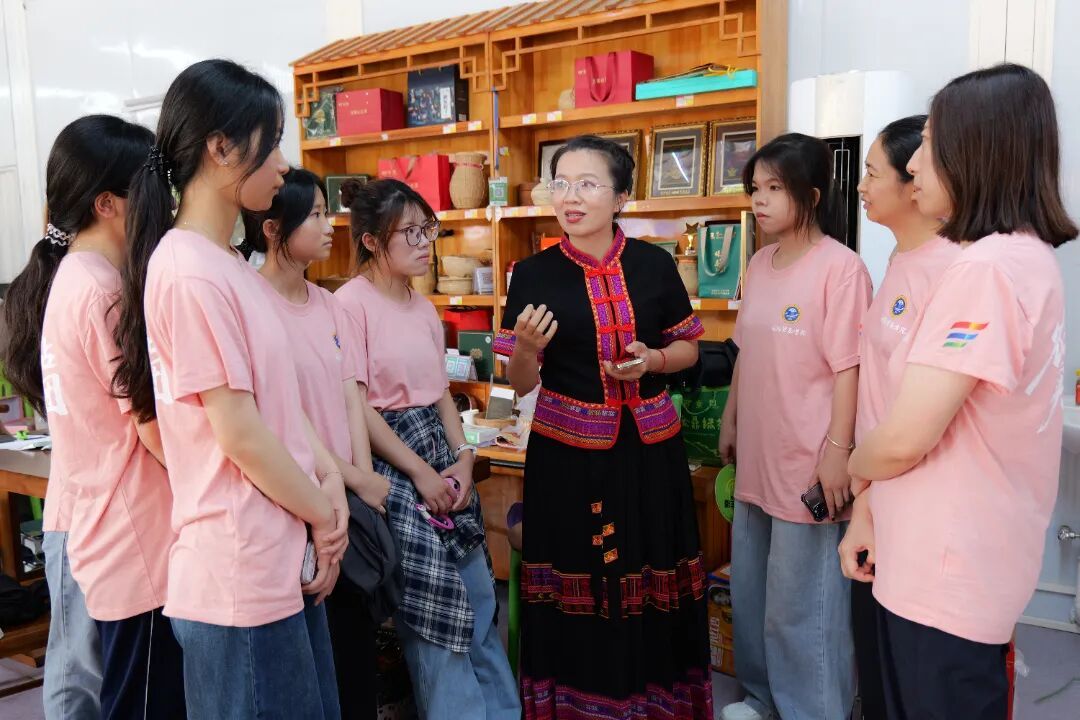 走进五指山,实践团的脚步既踏响了非遗传承的新节奏,也踩准了茶香飘远的新路径。在“布黎布舍”非遗文创工作室,返乡大学生陈孟丽将黎苗服饰文化融入文创设计的实践,引发团队共鸣——他们随即设计“线下体验研学+线上直播带货”模式,用“黎锦纹样藏着方言密码”的故事打动消费者,还优化宣传关键词,突出“天然染料环保理念”,让千年非遗通过电商走进现代生活。