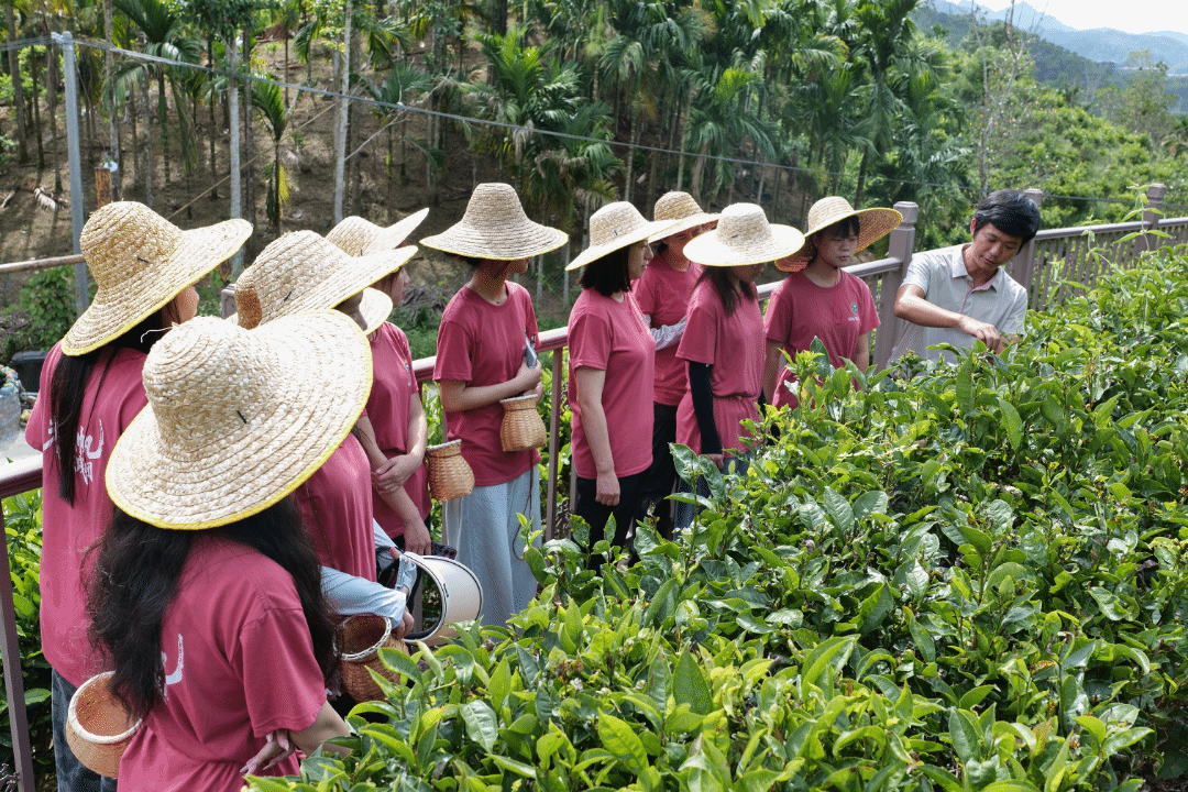 茶香氤氲的水满乡,650亩生态茶园里藏着电商助农的另一番景象。实践团浸式体验“从茶山到茶杯”的全链条:触摸百年古茶树、俯瞰茶海、观赏茶艺、聆听创业分享。针对鹦哥景红茶企“跨境电商出海但线上宣传不足”的痛点,团队创作“雨林深处的东方茶韵”系列短视频,展现古茶树生态与制茶工艺,助力茶香飘向海外。