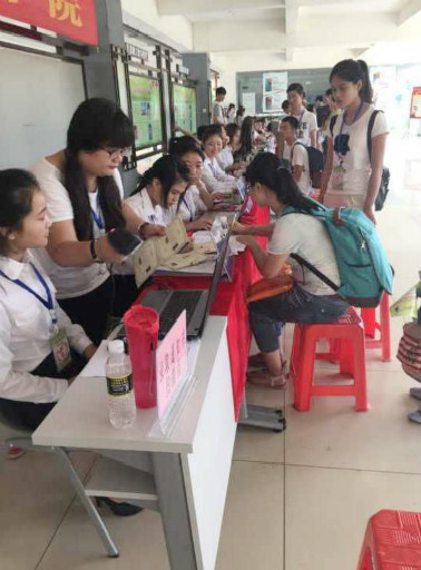 据了解,在本次迎新工作中我院团总支学生会中共成立了四个工作组,分别为后勤服务组、现场接待组、宣传工作组、咨询工作组,积极为新生和家长们答疑解难的同时提供力所能及的帮助。在迎新工作开始前,我院学工办副主任赵志凌老师组织全体团学干部进行了集中培训,我院高度重视此次迎新工作,制定了《2015级迎新工作方案》,为迎新工作做好充分准备,我院学工办主任麦锐和学工办副主任赵志凌充分调动学生干部及老生积极分子迎新积极性,从宣传入手,通过悬挂欢迎横幅和布置学生活动宣传展板等,为新生和家长入校创造了一个和谐温馨的气氛,在新生引导方面,工商管理学院组建了志愿者服务队伍,从接车、报到、缴费到入住宿舍提供了最真诚的服务,迎新的工作人员和志愿者们也是满怀热情和冲劲迎接着着每一位新生的到来,每一位工作人员各司其职,工作井然有序。远远就可以看到“工商管理学院新生接待点”标语在人群中显得格外醒目。“大家都很积极主动热情,他们不惧烈日骄阳,这些孩子真懂事”新生家长们对我院的迎新工作给予高度的肯定。