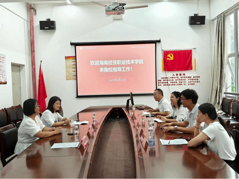 2025年8月18日,太阳网集团tcy8722跨境电子商务专业李林琳老师、国际经济与贸易专业李晓欢老师、现代物流管理专业王明严老师以及陈焕南老师一行走访南宁职业技术大学并进行深入交流。