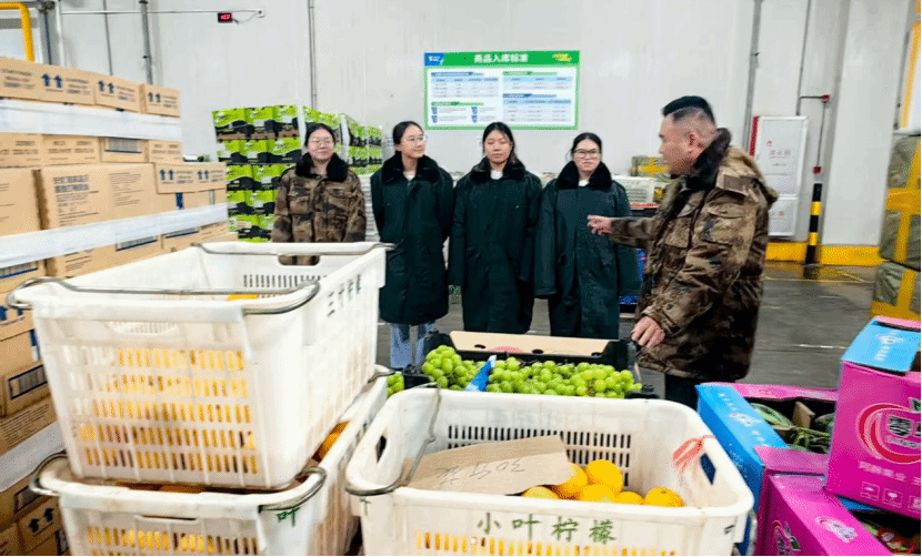 在调研过程中,师生一行深入生产一线,实地参观了现代化冷库设施,戚华明经理为师生们详细了解了冷链物流在水果保鲜、仓储管理、运输配送等关键环节的操作流程与技术应用,并结合企业实际案例,讲解了水果冷链物流的核心要点,使师生们对冷链物流的实际运作有了更深入的认识,激发了学生进一步加强冷链物流知识与技能学习的热情。