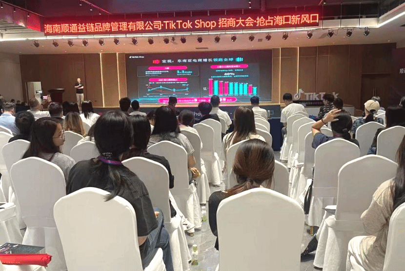 2025年10月10日下午,太阳网集团tcy8722跨境电子商务专业师生及学校跨境电子商务协会会员参加了由海南省跨境电子商务协会与海南顺通益链品牌管理有限公司联合举办“TikTok Shop跨境电商品牌出海直通车”大会。本次活动作为跨境电子商务专业的一次重要校外实践,也是校跨境电商协会本学期的核心校外活动之一,有效拓展了学生的行业认知与实践能力。