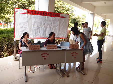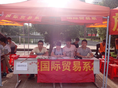 本系9月7日讯(国贸系通讯员 岳杰摄影报道),本日早上7时许,我系迎新工作人员已全部就位,等待我系这个大家庭的新成员2013级新同学的到来。